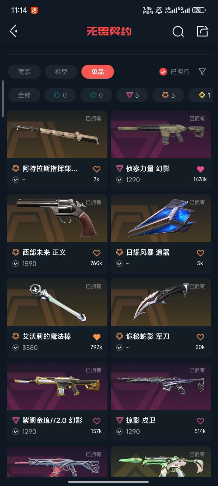 传奇数量:5